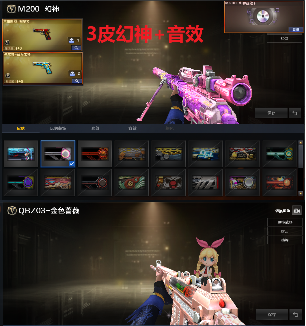 装备描述:排位:可以---------------爆破全装:幻神音效3皮肤(宠儿、丹凤、23白鲨)、冠军之特、世冠柯尔特、USP手枪、、、白虎-茸茸松狮、QBZ金色蔷薇、、、1套雷暴、1套雷霆、1套夜魔、、、、爆破四防(传说艾丽莎、枪娘樱)