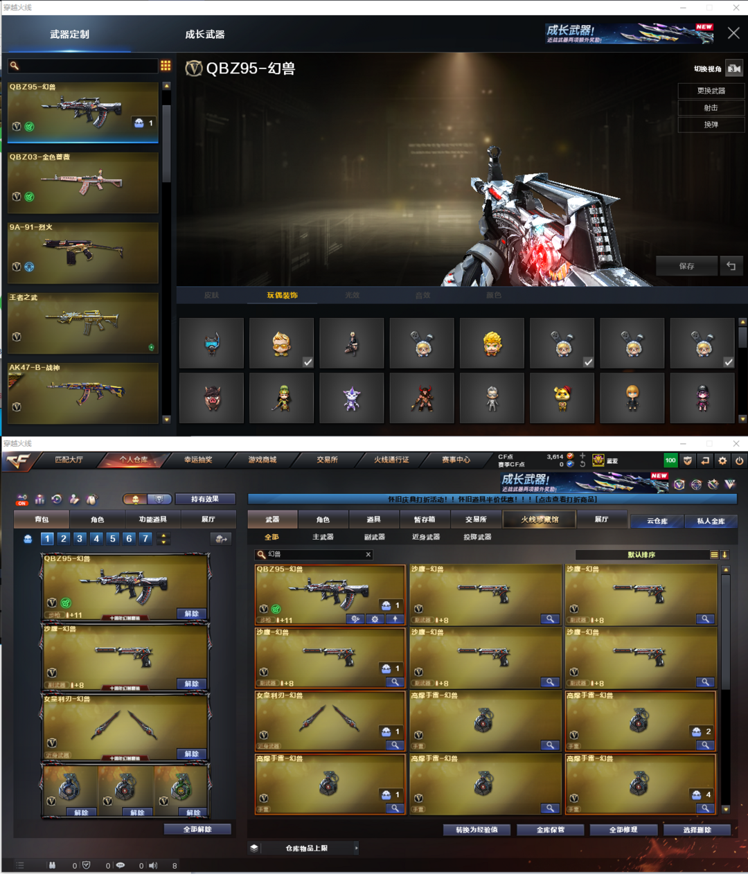 装备描述:排位:可以、、、、、、、、、、、、爆破四防:幻神3皮+音效(YZK、AG、周瑜皮肤)、、、、COP幻灵、COP雷霆王者、2个世冠柯尔特、5个幻兽沙鹰、破空枪刃、传说光耀、QBZ幻兽、白虎、QBZ金色蔷薇、、、幻神音效、裁决音效、蔷薇音效、毁灭音效、雷神音效、黑龙音效、火麒麟音效、黑骑士音效、、、5套幻兽、2套堕天神、5套幻灵、2套雷霆王者、、、爆破四防(传说女帝、影豹、王者春、王者貂蝉、王者涂鸦)