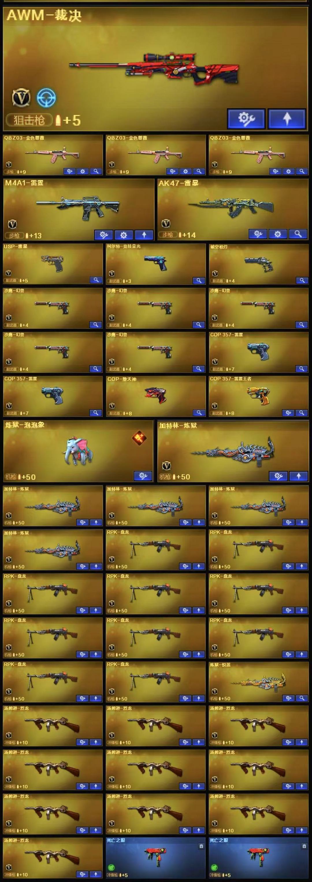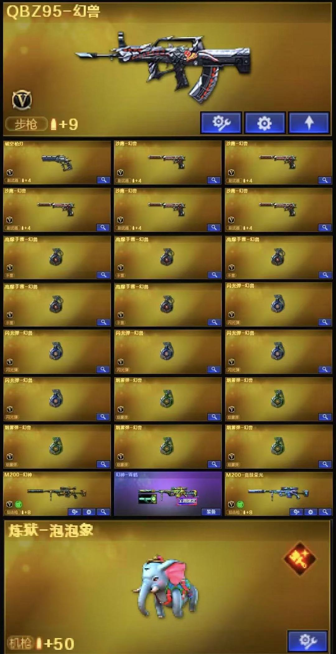炼狱泡泡象+5套幻兽套破空枪刃+幻神青鹤+雷暴USP+4COP+11烈龙2死亡之眼+10盘龙5炼狱