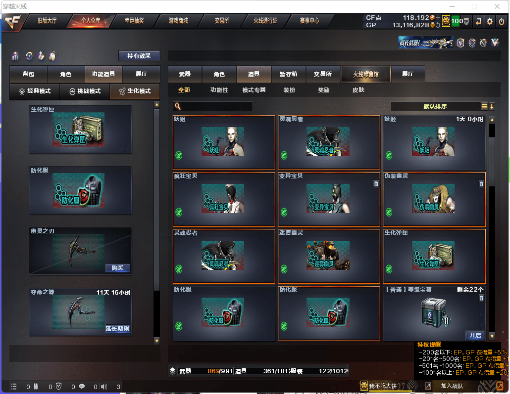 生化炽芒蝶刃♉传说影煞♉满氪满配八面凌龙♉王者星神♉生化背包无需换弹不退包猎手无生化6盘6烈蝴蝶毒蜂