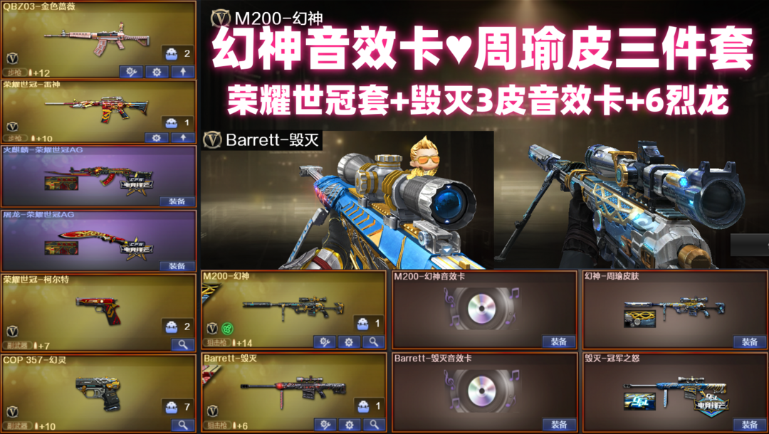 M200-幻神音效卡⚡周瑜皮三件套✅COP幻灵柯尔特⚡毁灭3皮带音效卡荣耀世冠套金色蔷薇✅生化6烈龙