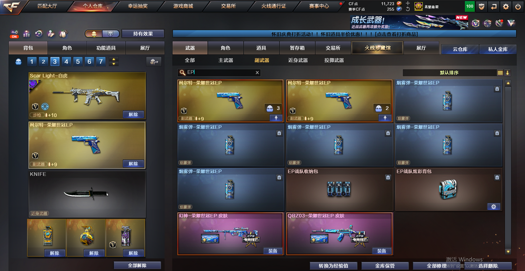 (EP套)幻神双皮满配副武器蝴蝶刀鲨臂+传说圣灵暗裔光耀+6烈斯太尔6盘炼狱+裁决三件套