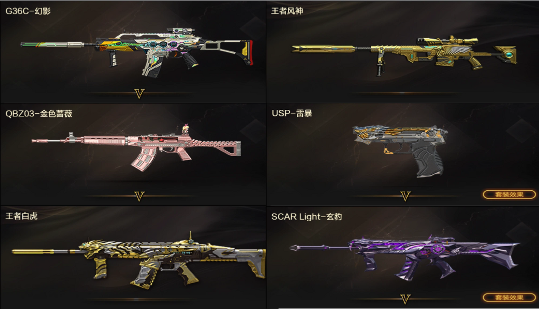 幻神白鲨电流+星神音效卡+裁决4皮音效卡☎G36C幻影QBZ蔷薇王者白虎玄豹+USP雷暴☎3防隼玫瑰