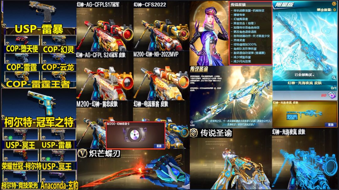 透明幻神光海夜岚+传说星骇圣谕✨usp雷暴冥王法玛斯天戎G36C幻影冠薇✨璀璨星神裁决音效卡炽芒蝶刃