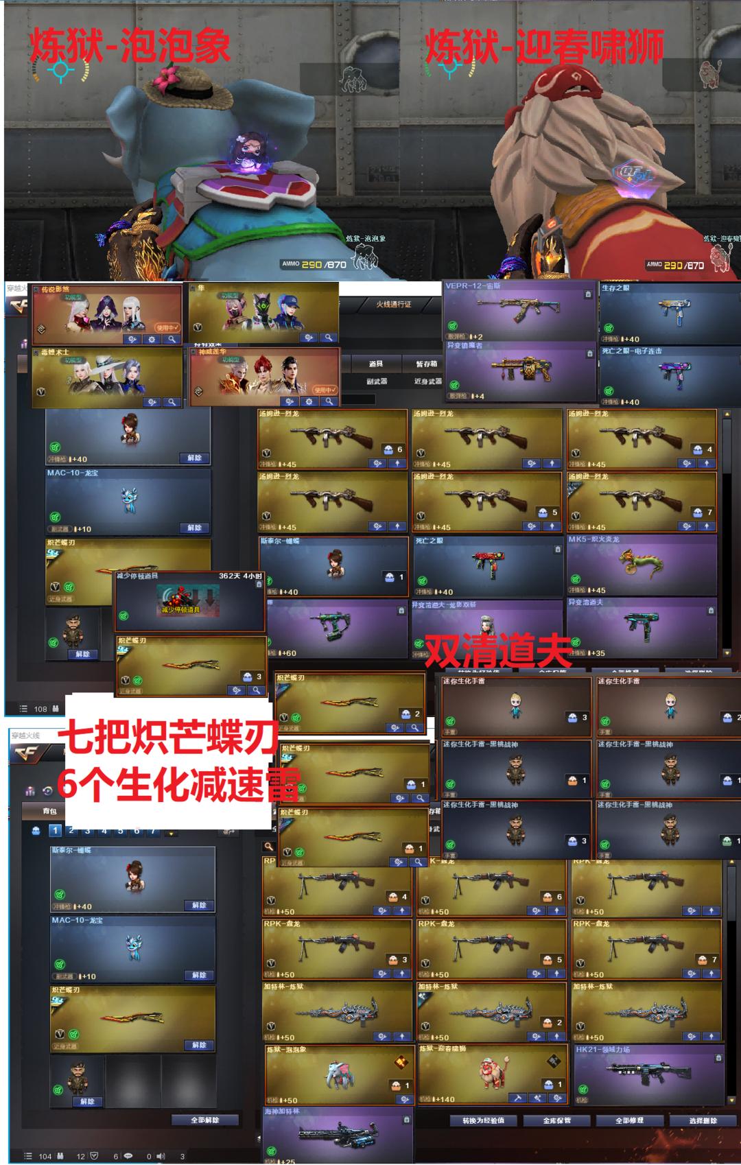 限制: 租号2次及以上 |装备描述:排位:可以---------------生化压力四防极品(背包变更、可以查看生化僵尸血量):无需换弹、6烈6盘、炼狱、炼狱泡泡象、炼狱-迎春啸狮、HK21领域力扬、双异变镇魔者、异变清道夫、异变清道夫-小人枪、毒蜂、宙斯、MK5炽火炎龙、斯泰尔蝴蝶、死亡之眼、MAC涂鸦、MAC龙宝、7把炽芒蝶刃、手斧镜、5个生化生化雷、超级对讲机、减少停顿道具、生化常用弹匣、、、、、、爆破全装:幻神13皮肤(权、YZK、KZ冠军、EP世冠荣耀、宠儿、周瑜、巅峰荣耀、AG、冠军之幻、星火小队、星耀、电流骇客、黄忠)、传说幽瞳、98K星神带音效、M200-竞技荣光、、、、传说破晓、传说幽冥、USP雷暴、荣耀世冠EP柯尔特、柯尔特竞技荣光、白鲨柯尔特、神威天凌、FAMAS G2-天戎、、、幻神音效、蔷薇音效、白虎音效、玄武音效、极光音效、、、、G36C幻影、传说夜影、传说辉光、QBZ金色蔷薇、、、雷暴手雷、夜魔手雷、竞技荣光手雷、、、、生化人物(神威莲华、隼、传说影煞、毒蝰术士、王者炫、王者闭月羞花)、爆破人物(传说艾莉莎、传说星骇、云悠悠、关小羽、星际战将)