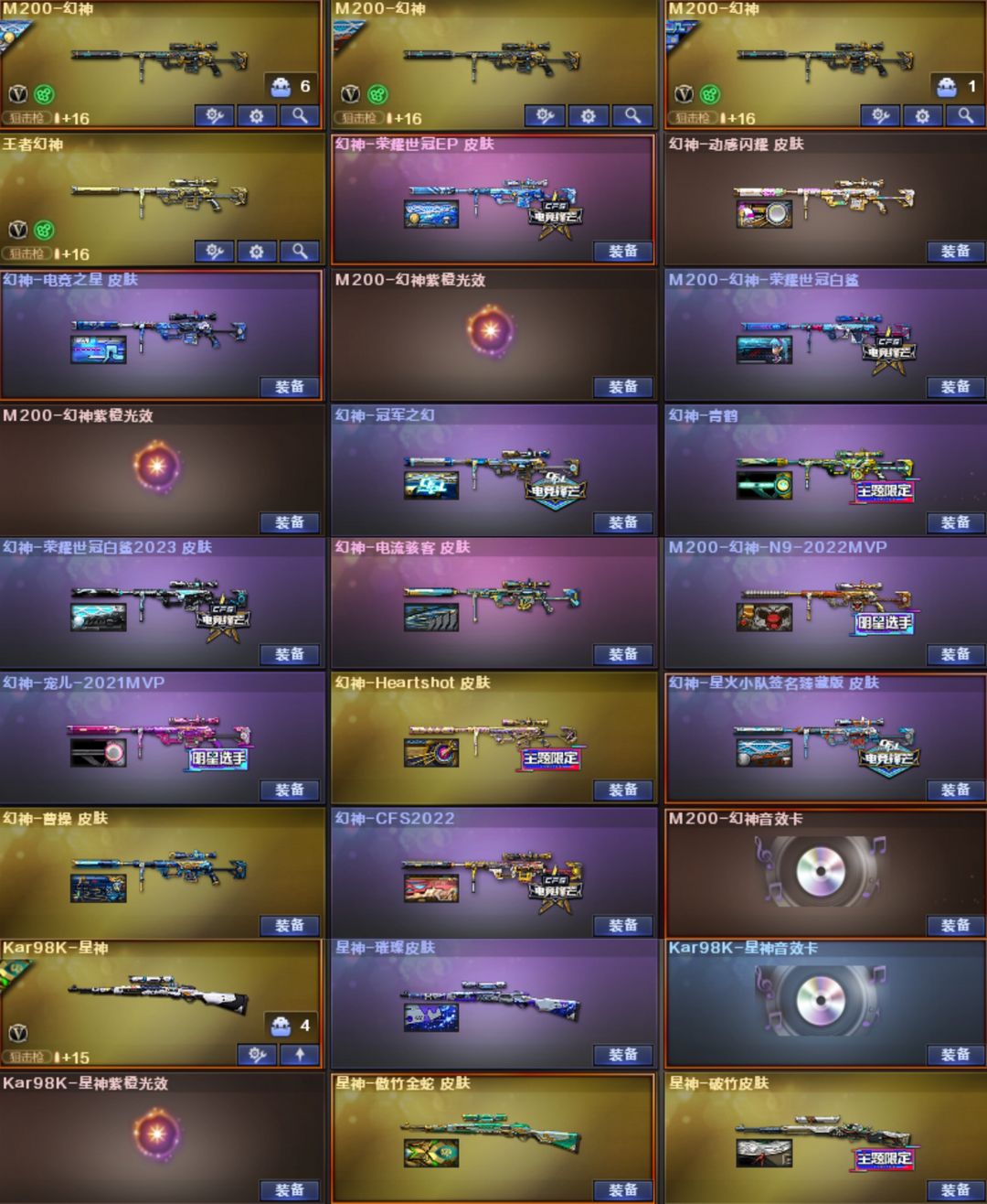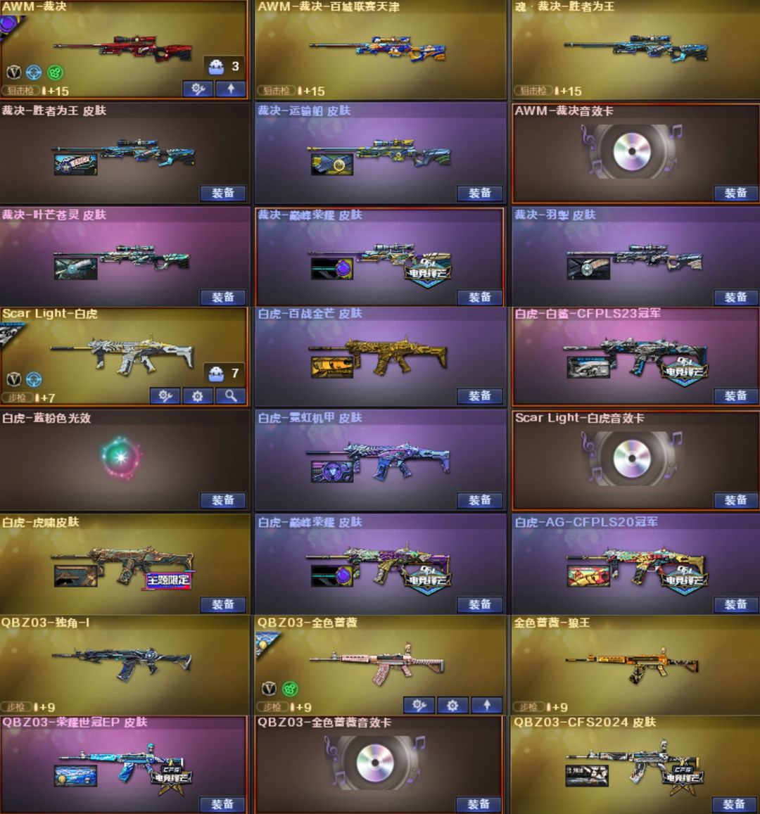 灵眸幻影EP套⭐幻神音效卡电竞EP星火15皮⭐裁决音效卡5皮⭐白虎白鲨百战6皮⭐QBZ2皮满配副手