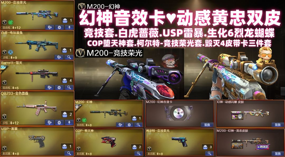 134V⚡生化6烈龙蝴蝶⚡M200-幻神音效卡⚡动感闪耀黄忠双皮USP雷暴M竞技荣光套COP白虎蔷薇
