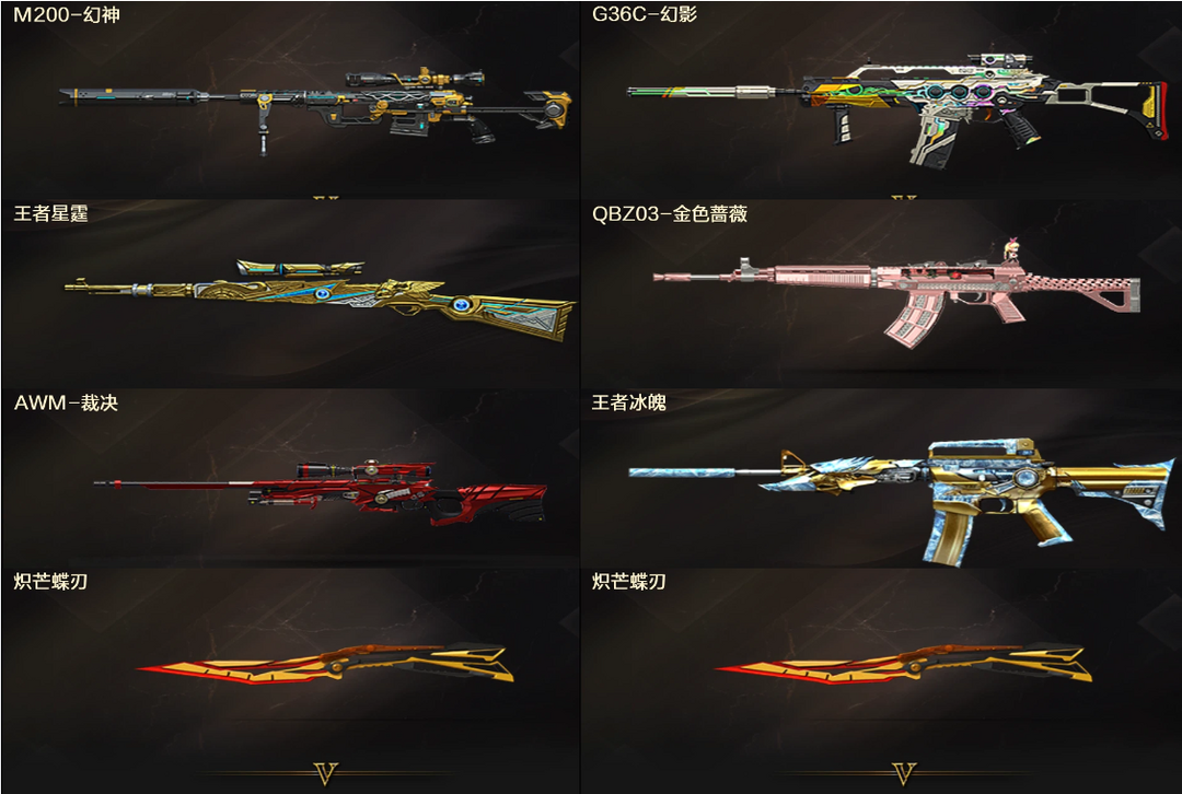爆破装❤幻神裁决+王者星霆❤G36C幻影QBZ蔷薇+王者冰魄+2炽芒蝶刃❤4防关小雨