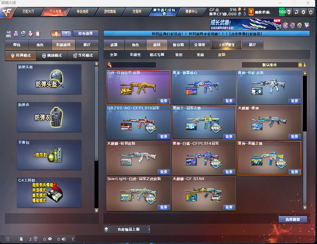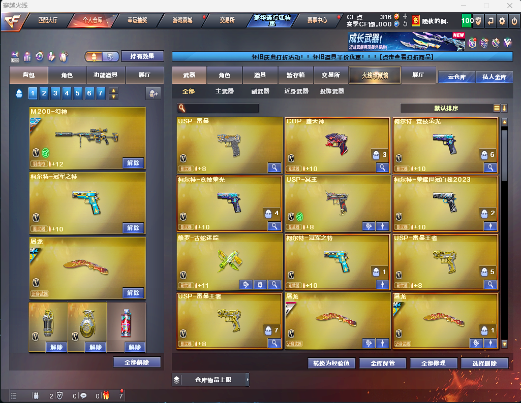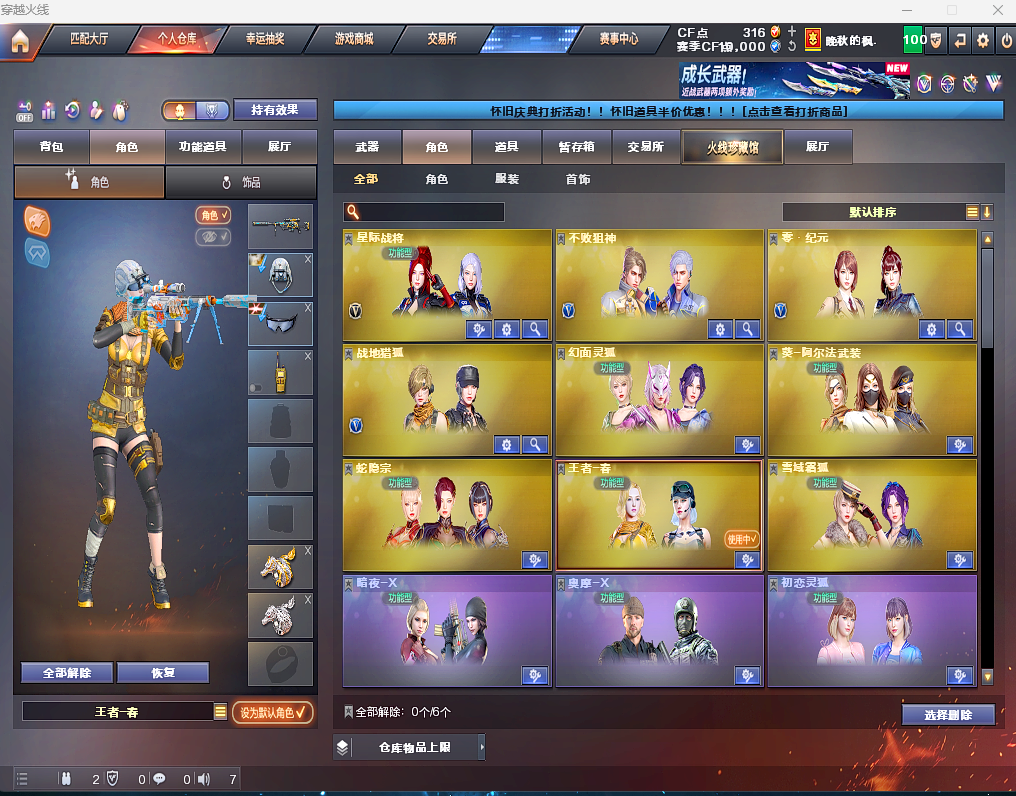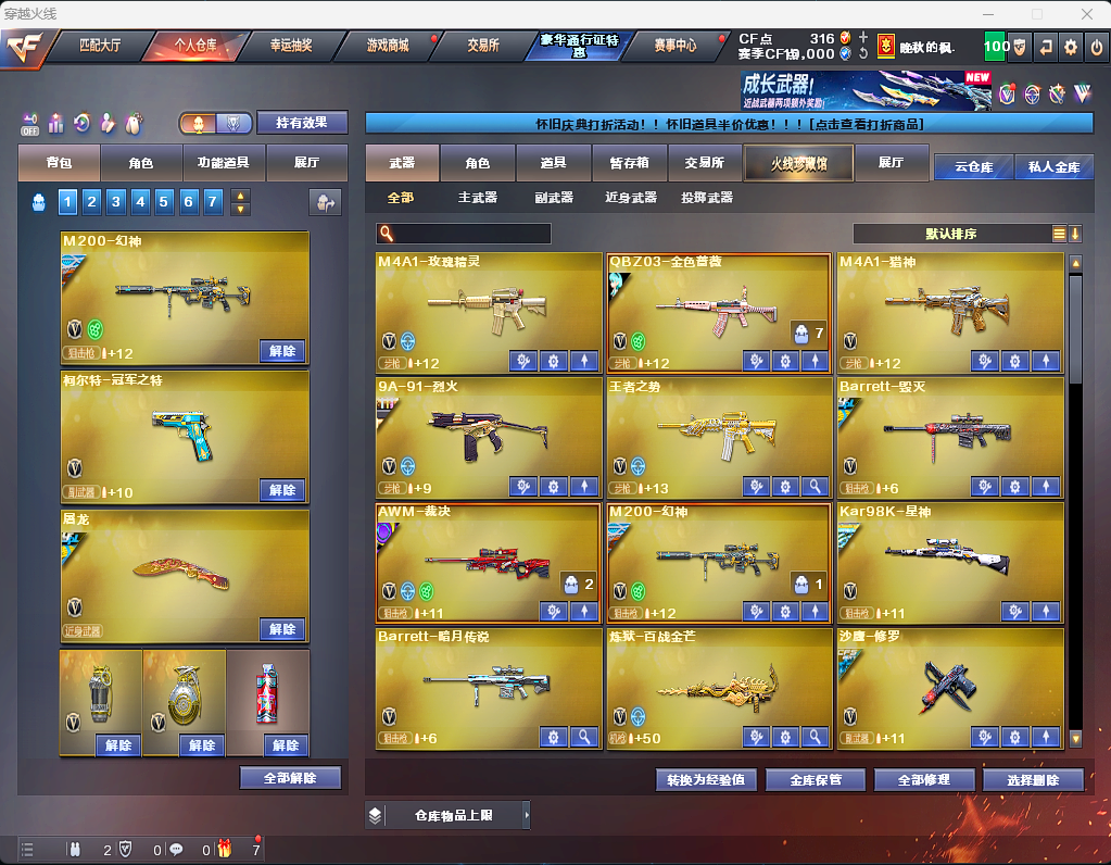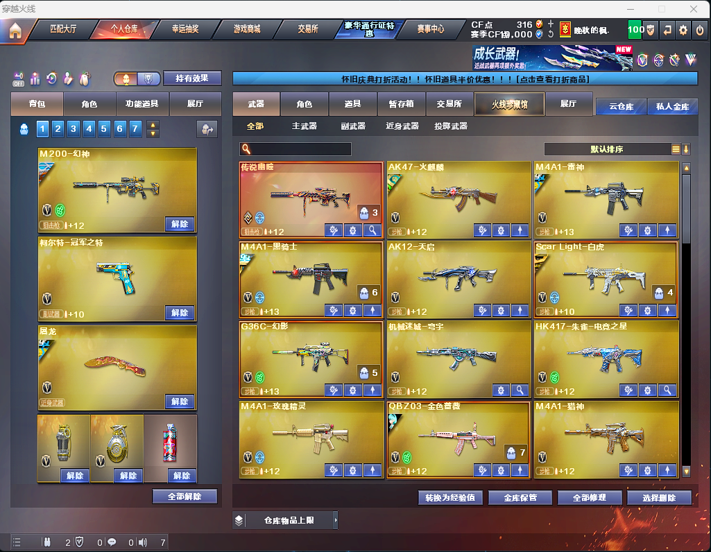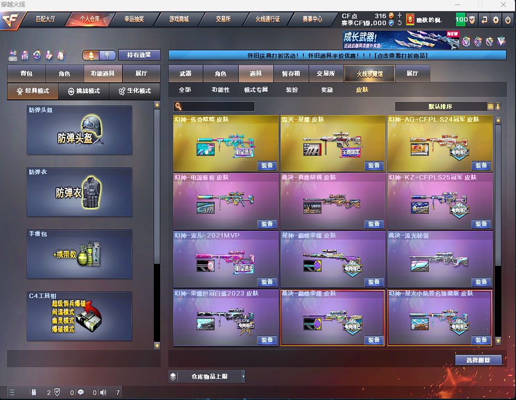 炽芒蝶刃⭐传说幽瞳⭐星火小队⭐裁决3件套⭐幻神3件套⭐星神3件套⭐g36c幻影⭐qbz宠儿⭐冠军之星