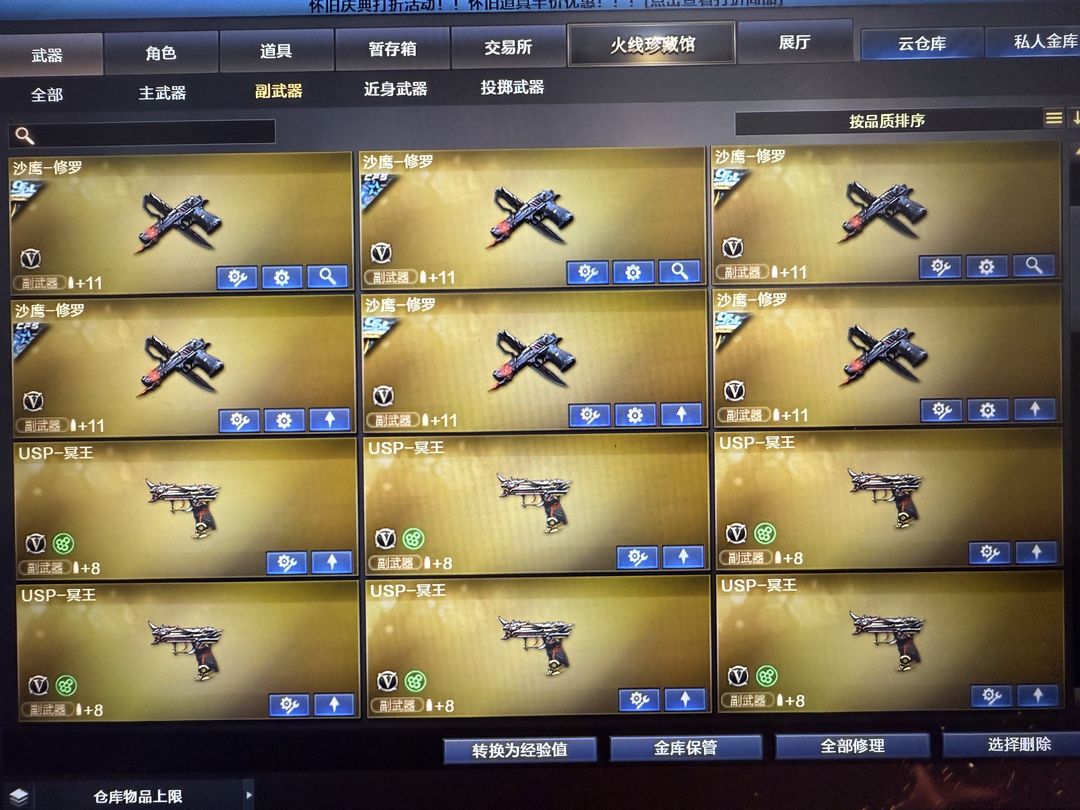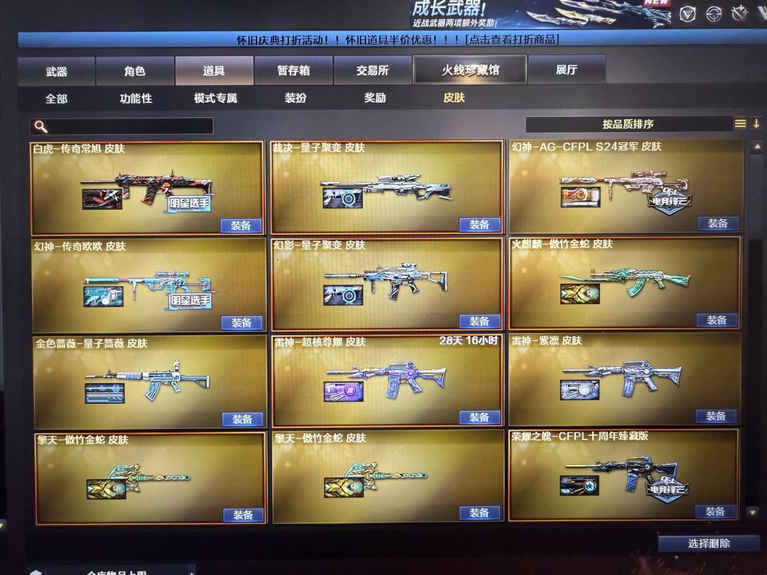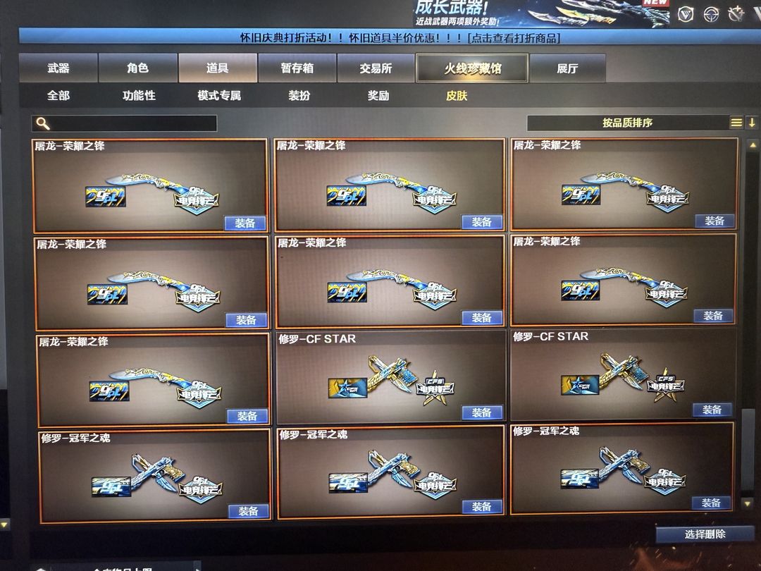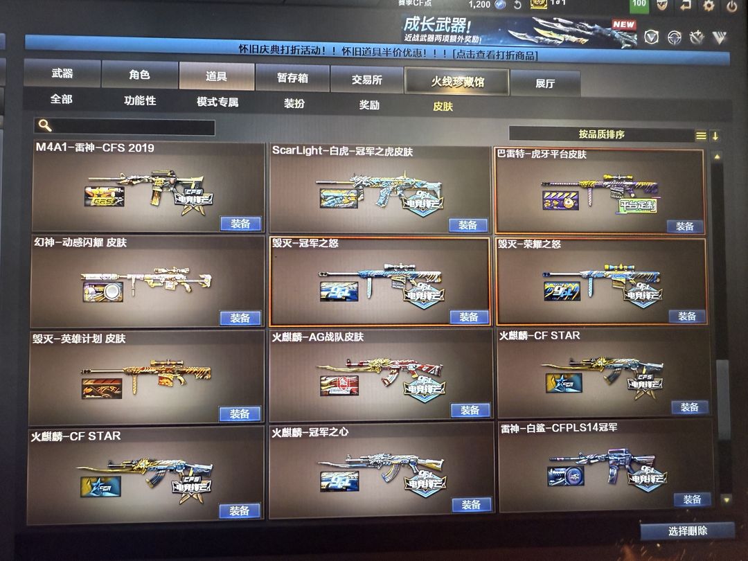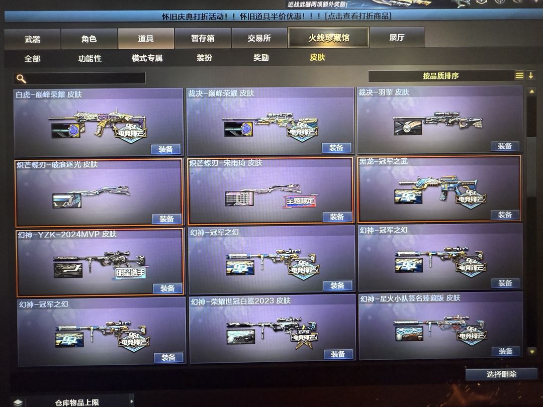 装备描述:超核玩家,爆破生化挑战三全装, 双神威 幻神12皮yzk最新皮肤,星神三件套,裁决三件套,白虎常旭,雷神虎牙,巴雷特虎牙,白虎虎牙,星神虎牙,QBZ虎牙等,轮椅枪齐全,7冥王7柯尔特,冠军皮肤全套。冠军之刃,EP之刃 炽芒蝶刃 荣耀之魄珍藏十周年等等,不定时更新最新装备。开挂封号律师必起诉