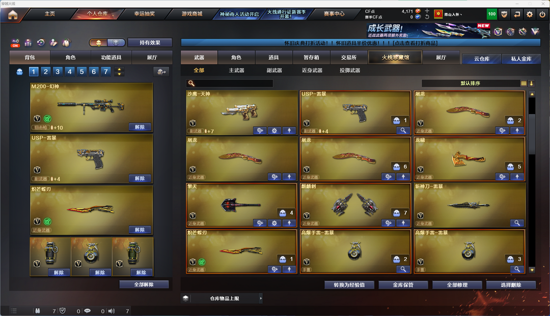 幻神宠儿雷暴usp蝴蝶刀银翼191M4量子蔷薇巅峰荣耀火麒麟6烈斯泰尔蝴蝶