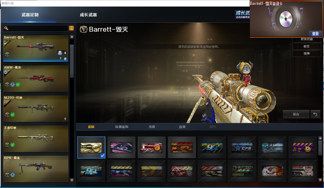装备描述:排位:可以--------------生化四防(可以变更背包、查看生化僵尸血量):无需换弹、6烈、6盘、炼狱、双面神、斯太尔蝴蝶、传说圣灵、VPER-12-宙斯、MK5-炽火炎龙、死亡之眼、MAC涂鸦、手斧镜、3个生化减速雷、、、、、、、爆破四防:幻神(黄忠皮肤)、王者幻神、、、、USP雷暴、世冠柯尔特、传说光耀、白虎、QBZ金色蔷薇、、、毁灭音效、黑骑士音效、、、1套竞技荣光、5套云龙、、、生化四防(云悠悠、王者涂鸦、莎莎)、爆破四防(晴雅、职业经理)