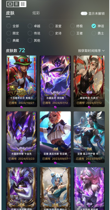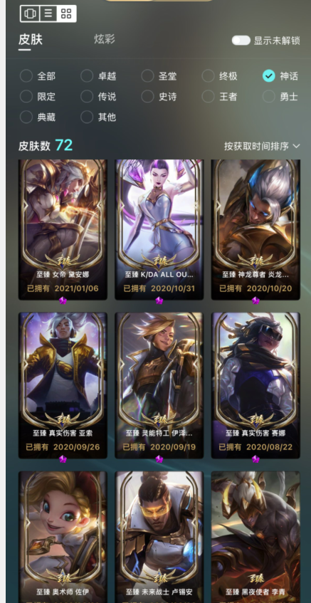 推荐包天1080原皮〓72神话至臻KDA套卡莎灰烬骑士殿堂传奇妖姬〓黄蓝龙瞎玉剑传说男女刀EDG神王