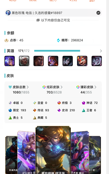 限制: 撤单率<85%才可租用此帐号英雄: 171