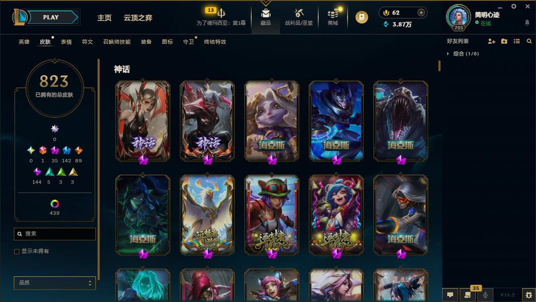██ 全英雄 1500皮丨禁止排位禁止匹配丨40神话丨IG卡莎丨穿星御星丨玉剑男女刀丨莲华瑟提永恩