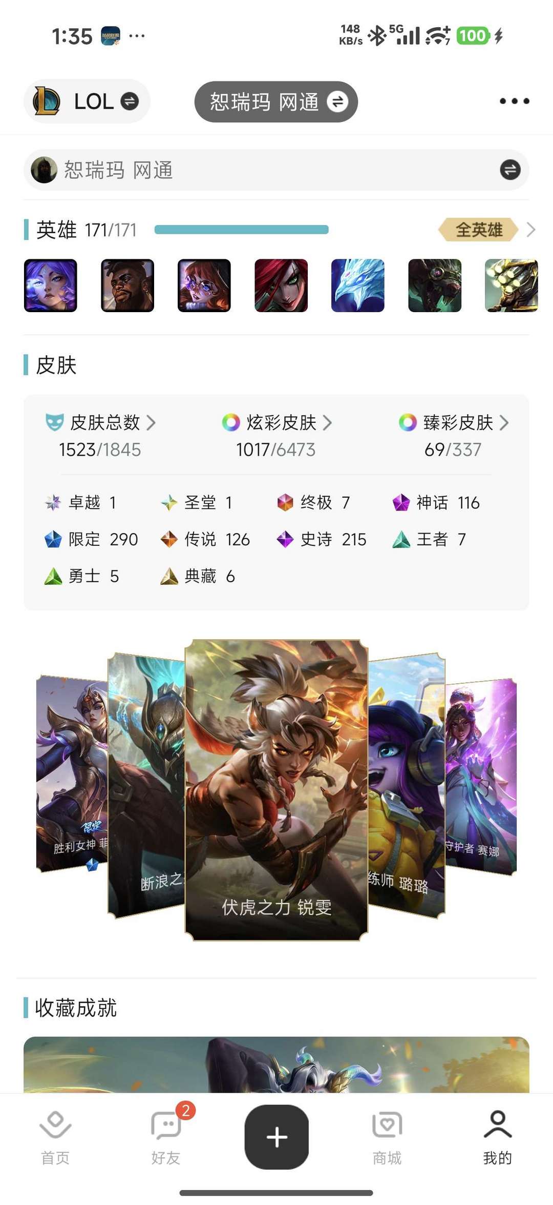 1523原皮,三档签名卡莎,1017炫彩,全英雄可排位,恕瑞玛精品号,禁止挂机。