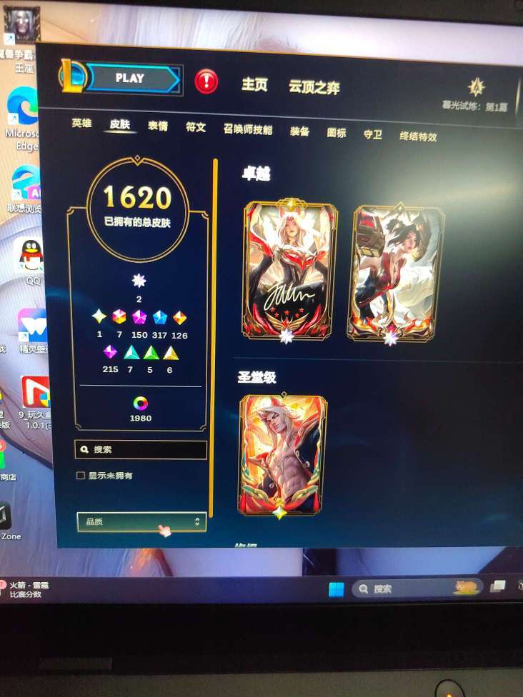 装备描述:1620个皮肤◇1983个炫彩△92个臻彩□联盟不朽狐狸签名版