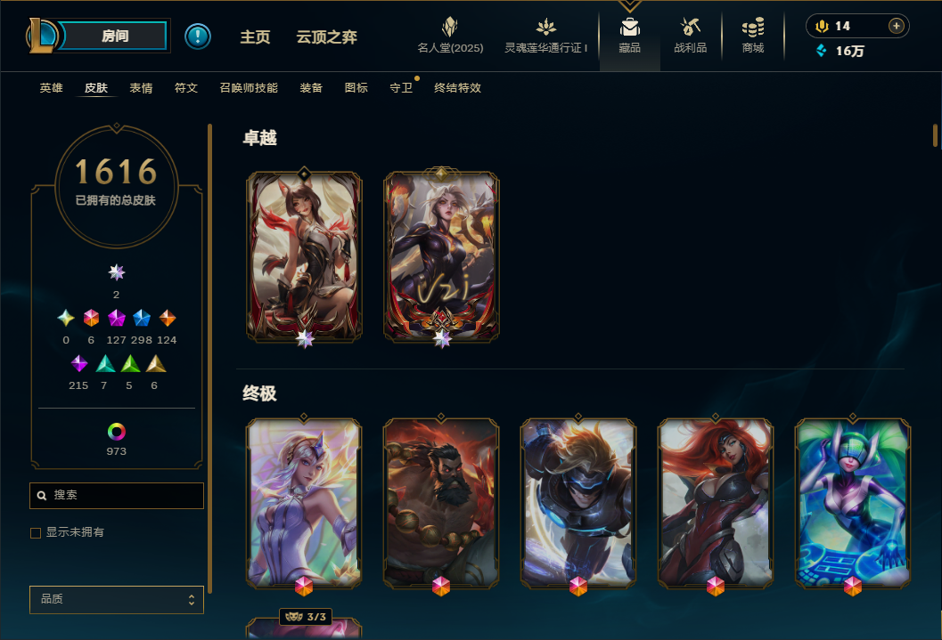 【禁排位/负胜率】联盟三区班德尔城1635皮❤联盟阿狸❤全至臻神话❤全战队大礼包❤负胜率虐菜号