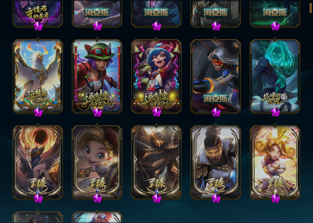 600可排、玉剑传说舞剑仙、海克斯鳄鱼、至臻凯隐、冠军锐雯、神王诺克、星之守护者金克丝、