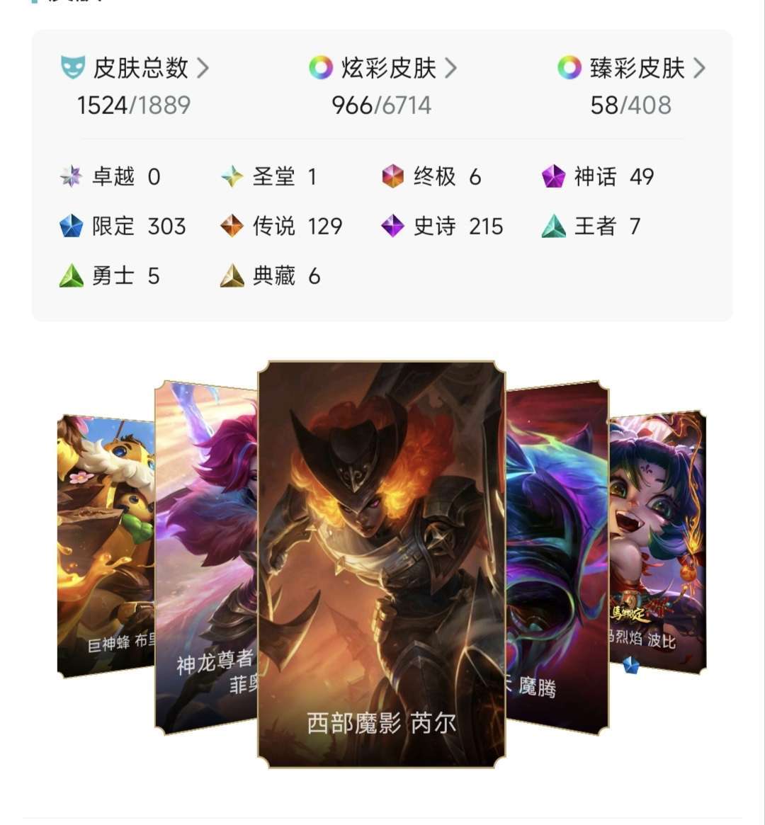 装备描述:电一铂金钻石,1040级,1524皮+966炫彩(截图为之前的) 限定:,IG全套、EDG全套、DWG全套、SSW全套、SSG全套、暗杀星全套、王国机神全套、星守前三期全套、御剑传说全套、电玩全套、泳池派对全套、情人节限定全套(除22年的三个情人节限定)、万圣节限定全套(除至臻)、冰雪节限定全套(除22年冰雪节限定)、星神全套、斩星易,穿星赵信、御星艾希,创星璐璐,摄魂vn,龙猴,龙刀(带炫彩),龙琴,星守佐伊,年限狗头,蔚,惊悚派对稻草人,阿木木,锐雯舞剑仙至臻:至臻kda一代阿卡丽,至臻kda一代卡莎,至臻塞拉斯,至臻(v赛娜,至臻狗熊,至臻女警、腕豪、武器、锤石、剑魔,至臻绝息圣堂女枪,至臻墨之影亚索,至臻锐雯、至臻刀妹、至臻御剑传说琴女,至臻神皇行者霞、璐璐、ez 传说除了新的几款基本都有