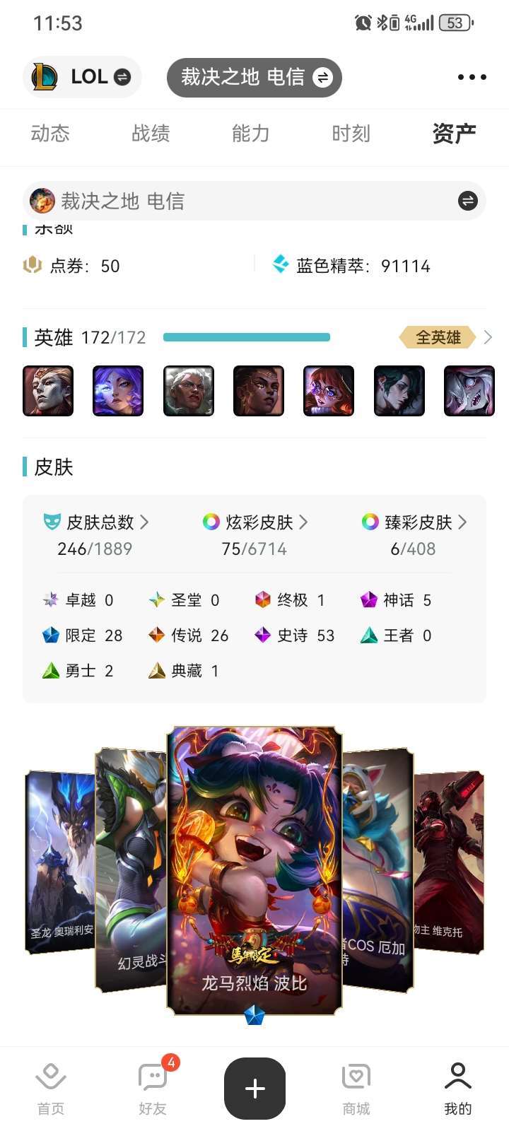 联盟三区皮肤三百多个需要的老板租啊可以打排位哦