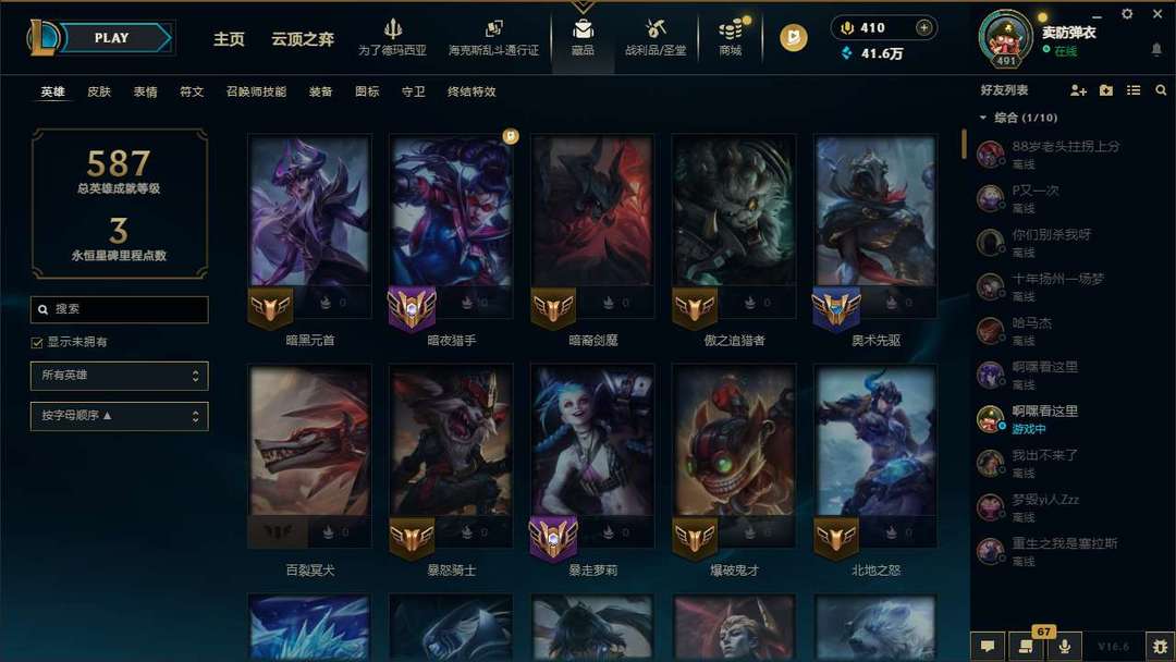 上赛季打上了宗师,自动掉了,这赛季没打,随便用,全英雄。