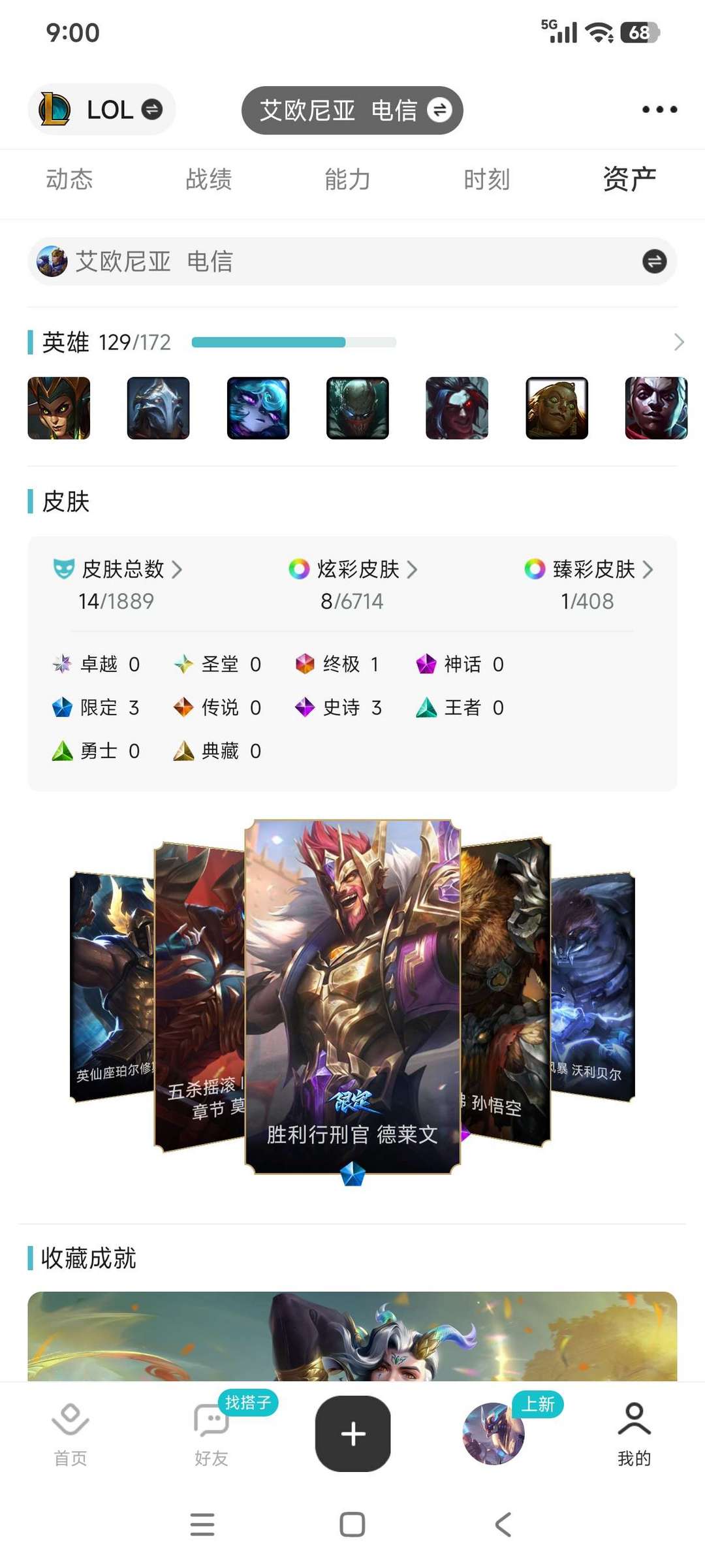 艾欧尼亚,可排位,129英雄,14皮肤,限定史诗终极皮肤等。