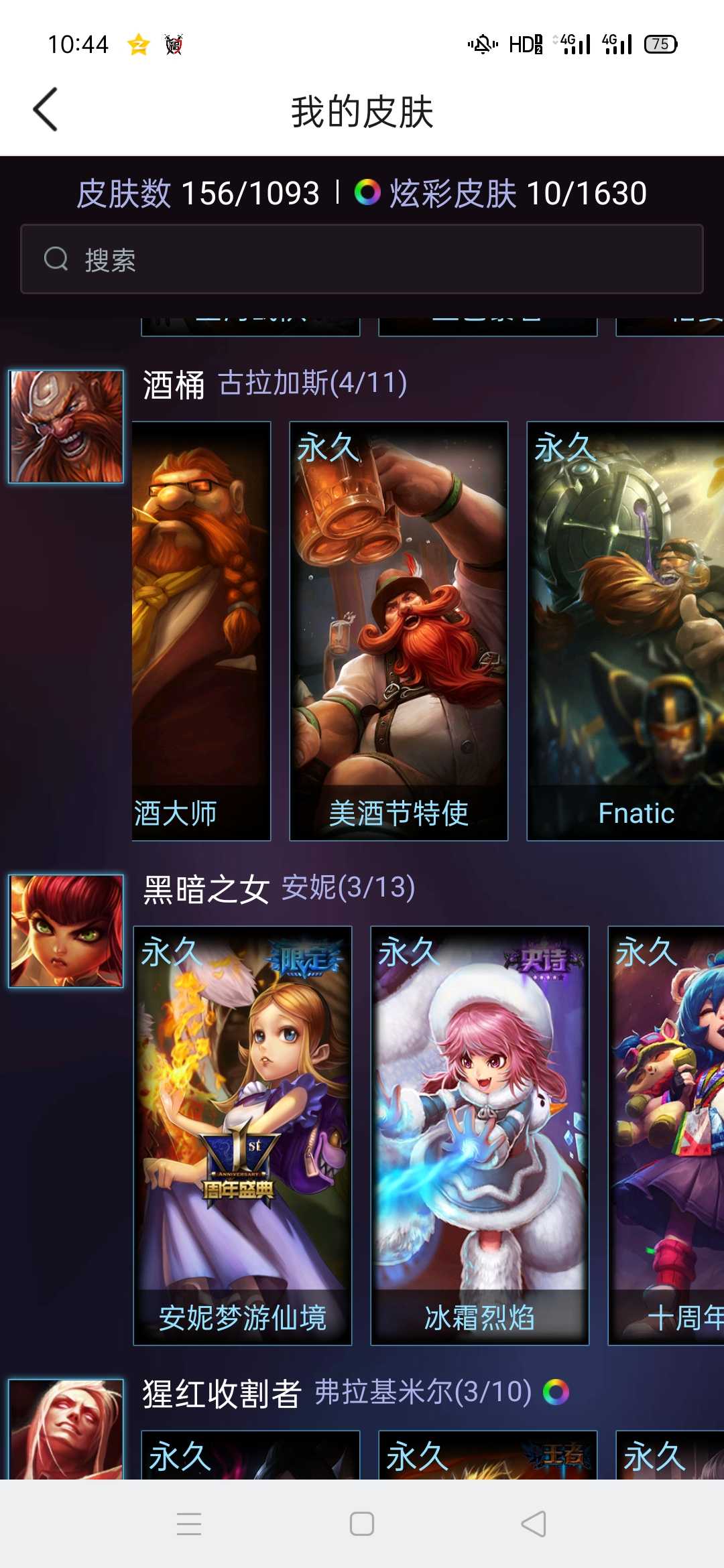 装备描述:英雄基本全有,皮肤156个,大部分英雄都有皮肤