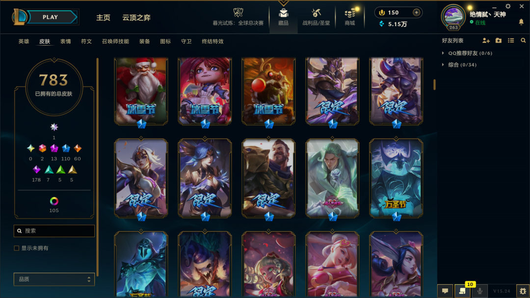8000皮肤〓20至臻海克斯〓龙瞎张辽〓殿堂阿狸〓黑夜亚索〓神龙尊者