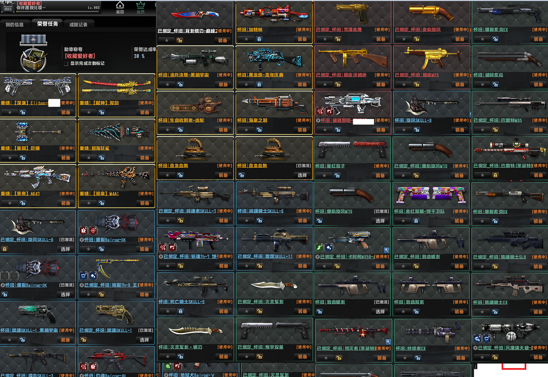 已经去黑雾,重铸弑神双剑,深渊,怀旧邪皇圣帝,电锯,盘龙。海皇。黑龙炮、旋风、金红双蝎,赛季悬赏
