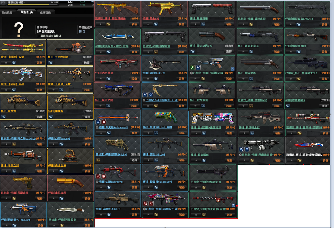 已经去黑雾,重铸弑神双剑,怀旧邪皇圣帝,电锯,盘龙。海皇。黑龙炮、旋风、金红,3-21赛季悬赏