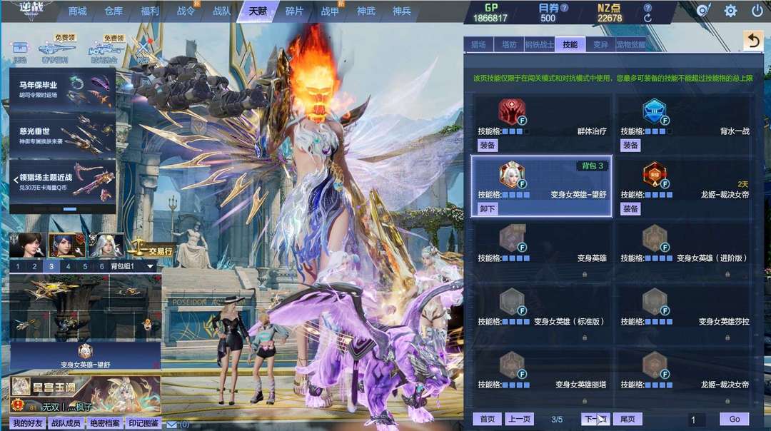 神域5+5,山海套,星寰套,脱离卡死翅膀可以2段跳,有3连携臂铠和变身英雄,