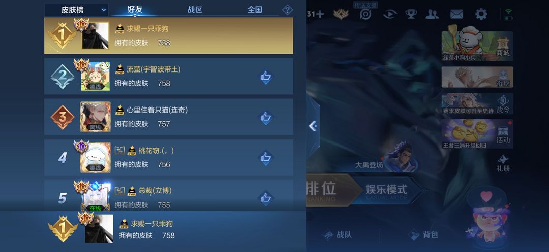 V10荣耀贵族 758满皮 满典藏小兵!皮肤国服榜,美神临世称号无双貂蝉! 无双凯皮肤