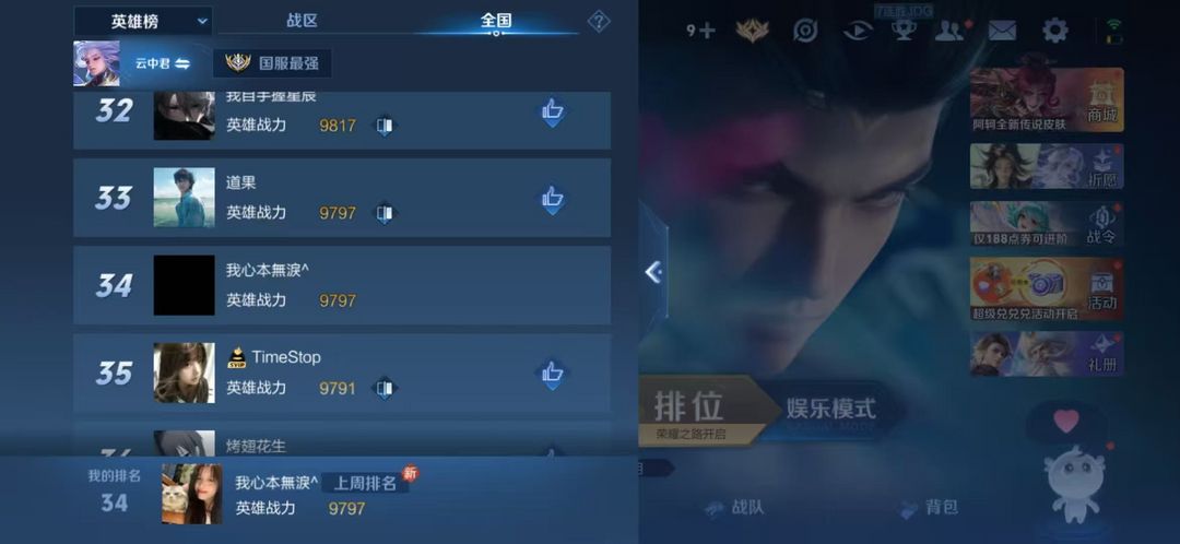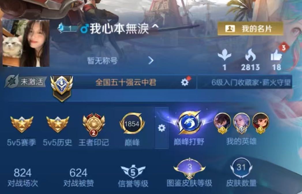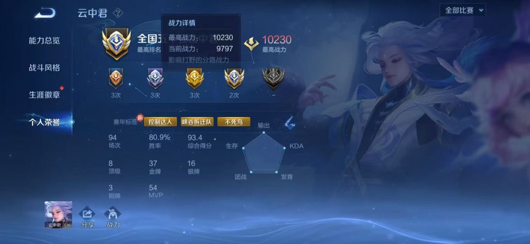 3月抢先服在榜国11云中君⭐巅峰1850银框⭐高胜率高评分⭐超多省级限定皮肤⭐可排位禁巅峰
