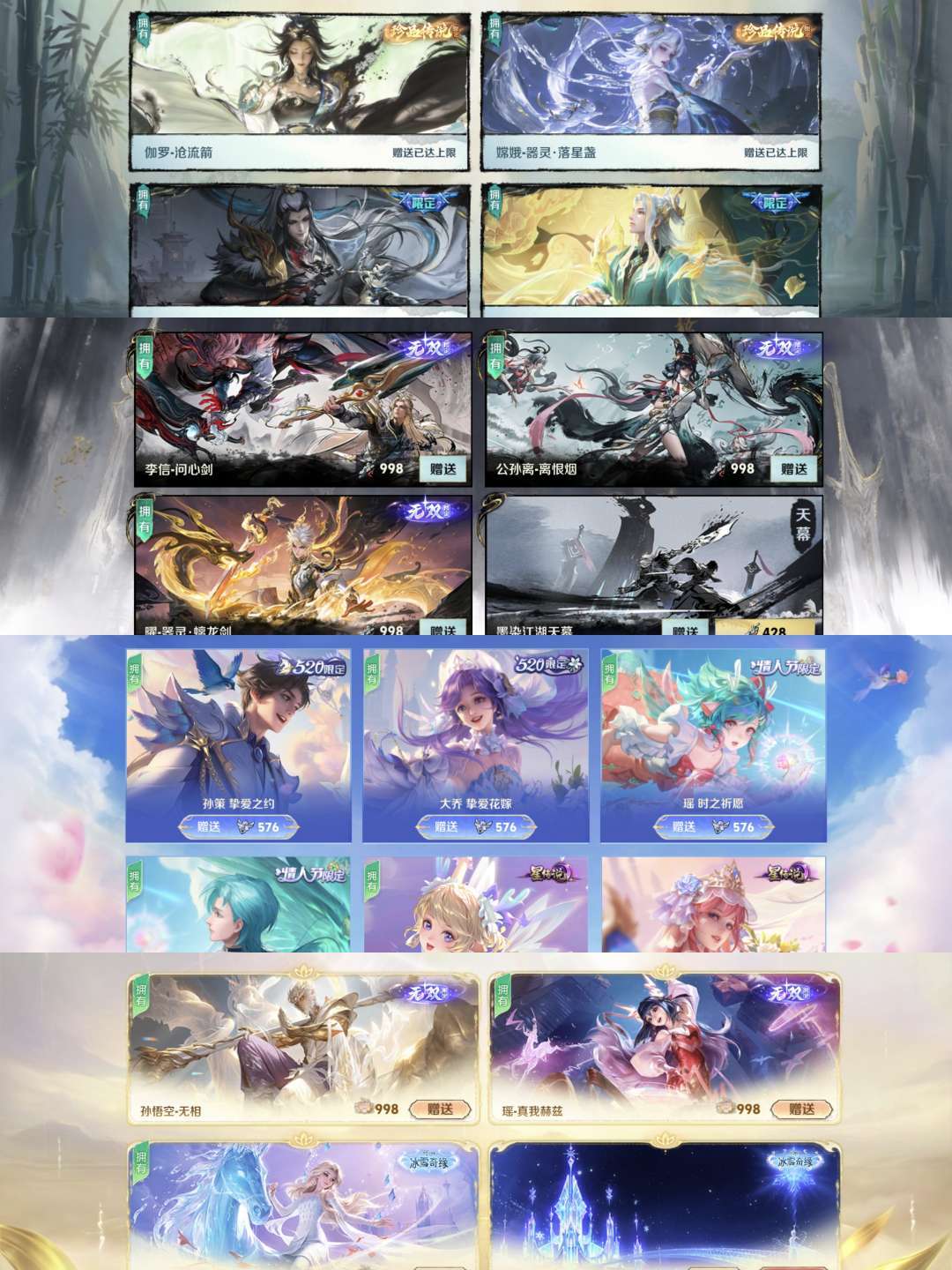 无双v10 女号 新皮肤全补 在榜万战鲁班 李信无双 马年全限定 李元芳年充 花木兰情人节 韩信传说