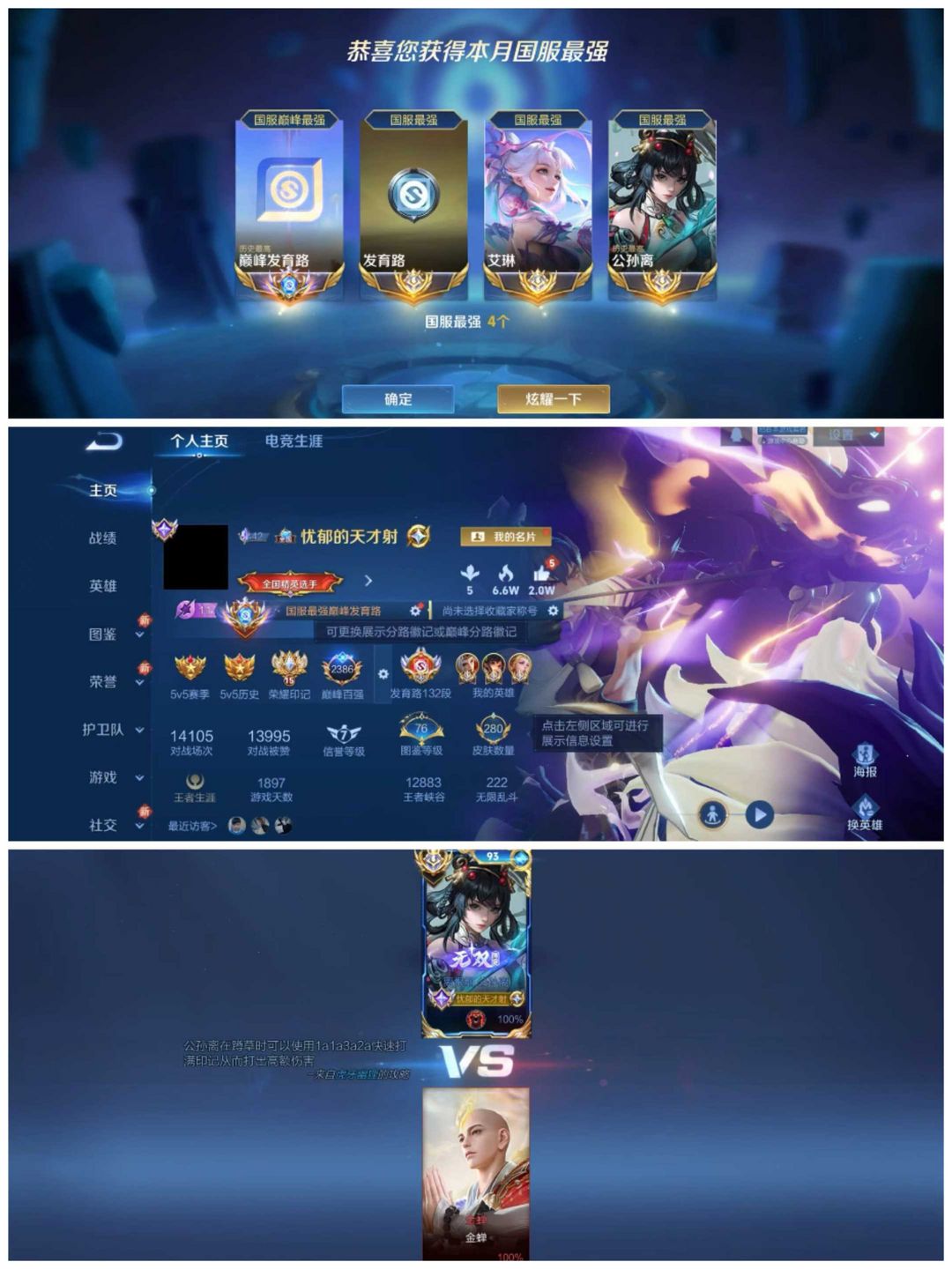 十一月国服镜澜曜巅峰前十/国服马超木兰/国服韩信李白露娜/大量十月国服百段分路主播职业logo