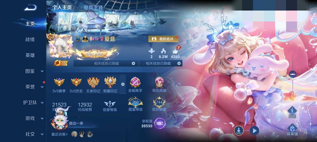 荣耀v10不禁言女号❤744皮历史大国服瑶满水晶满按键❤凯无双-神罪❤5小兵青铜锵锵