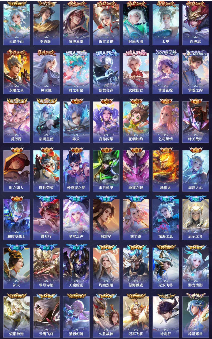 黄金可排✨3典藏46传说✨凤囚凰✨猫影幻舞✨全息碎影✨至尊宝零号赤焰✨天魔缭乱✨MVP/年限限定全买
