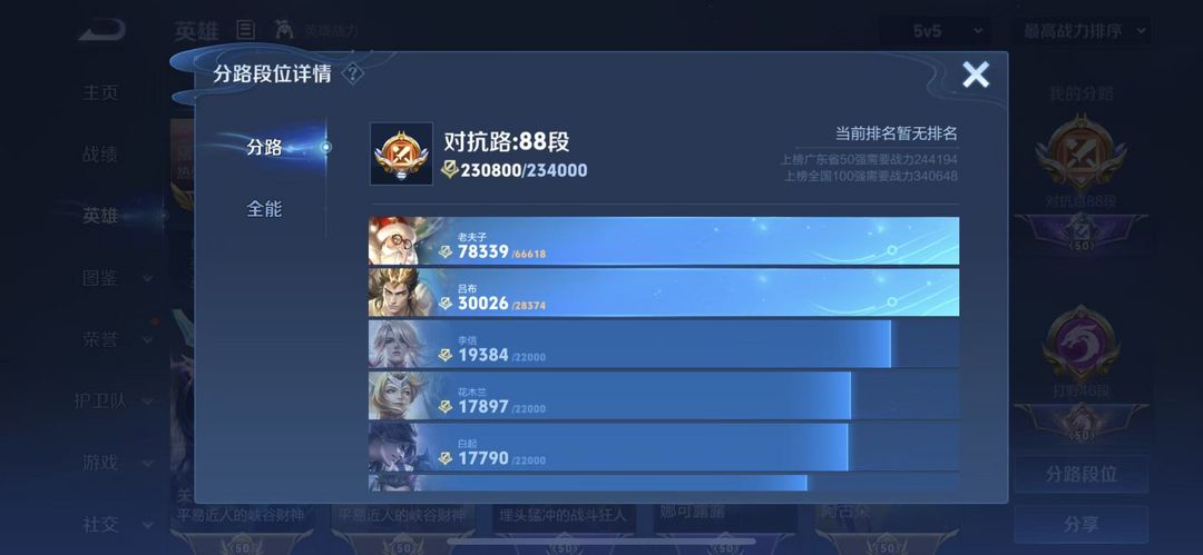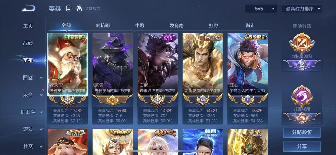 正式服在榜88段对抗路⭐1.7w双国服老夫子白起⭐圣诞限定皮⭐1.5w四小国标狂铁吕布⭐可排位