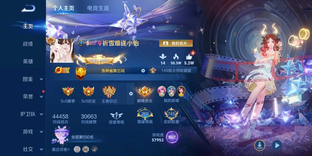 国服瑶/朵莉亚❤️荣耀v10不禁言❤️745皮满水晶满无双满珍品❤️满按键满小兵❤️女号