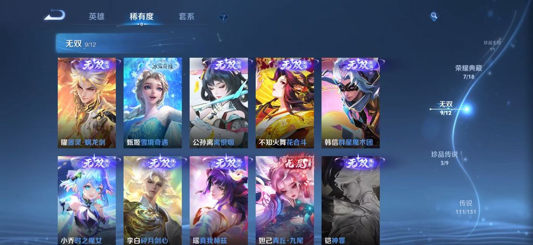 无双贵族亮 诸葛无双秒入 貂蝉珍品 瑶安吉拉已补 伽罗典藏 粉小兵皮 十无双多水百传 带妹专属
