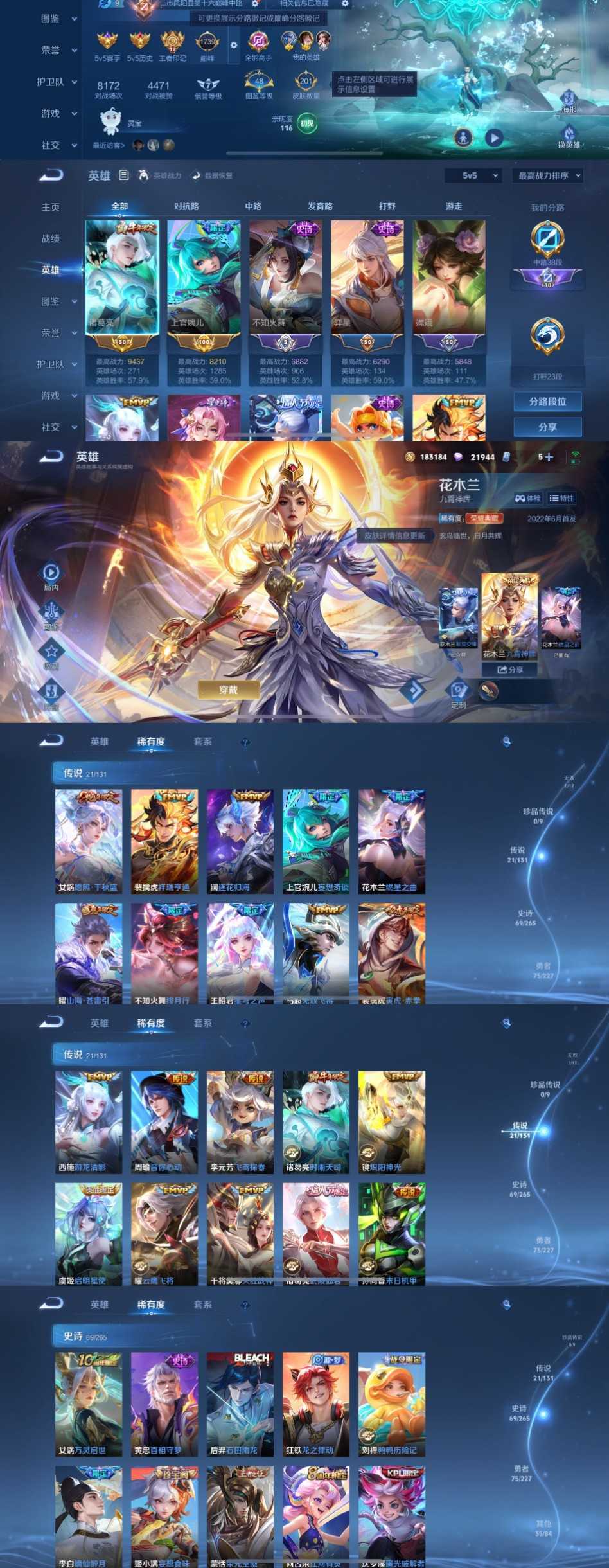 限制: 撤单率<49%才可租用此帐号装备描述:时间到了还登录白玩或者顶号全部改密拉黑处理永不解除,顶号机器会秒禁玩改密,顶号不仅拉黑还没得玩,赚三两块不容易,请理解谢谢。 ❤❤❤❤❤❤❤❤❤❤❤❤❤❤❤❤❤❤ 请勿开挂,挂机,送头,骂人,撤单后游戏等如有违规永久拉黑永不解除。 重置二级密码不要费劲了,号主每天都会上号查看,多行不义必自毙,人在做天在看,多做好事多自律,少做缺德事。 该号英雄126个皮肤201个,典藏1个,传说21个,史诗69个,祝你游戏愉快~