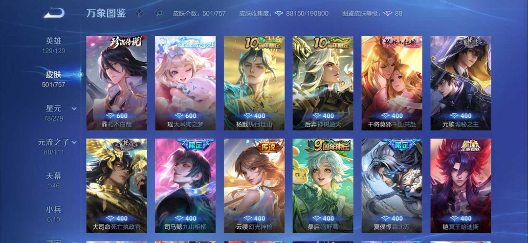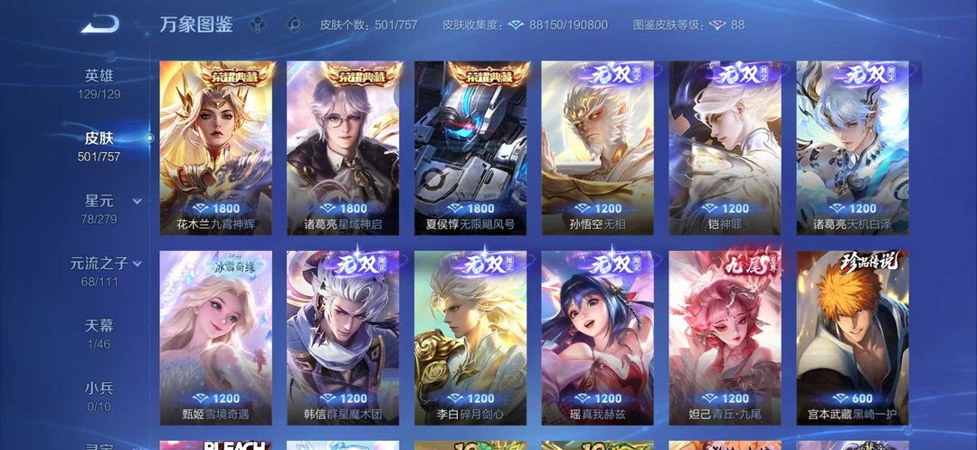 上号快 新皮肤必买 孙悟空无相 凯神罪 8无双限定天机白泽 琥珀纪元时之奇旅 在榜金标