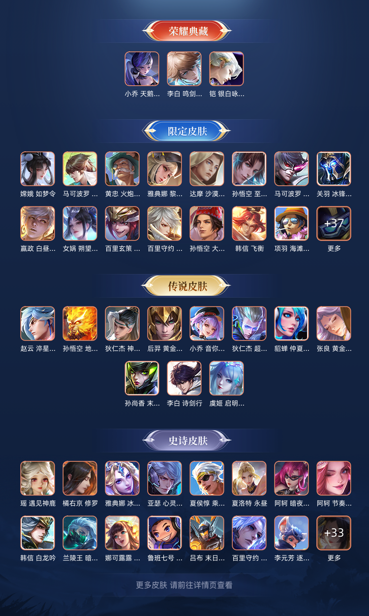 三典藏♉铠 银白咏叹调♉李白 鸣剑·曳影♉小乔 天鹅之梦♉孙尚香 乘龙·问璇玑♉白昼王子♉不要毁号