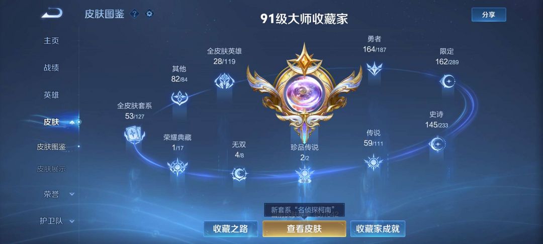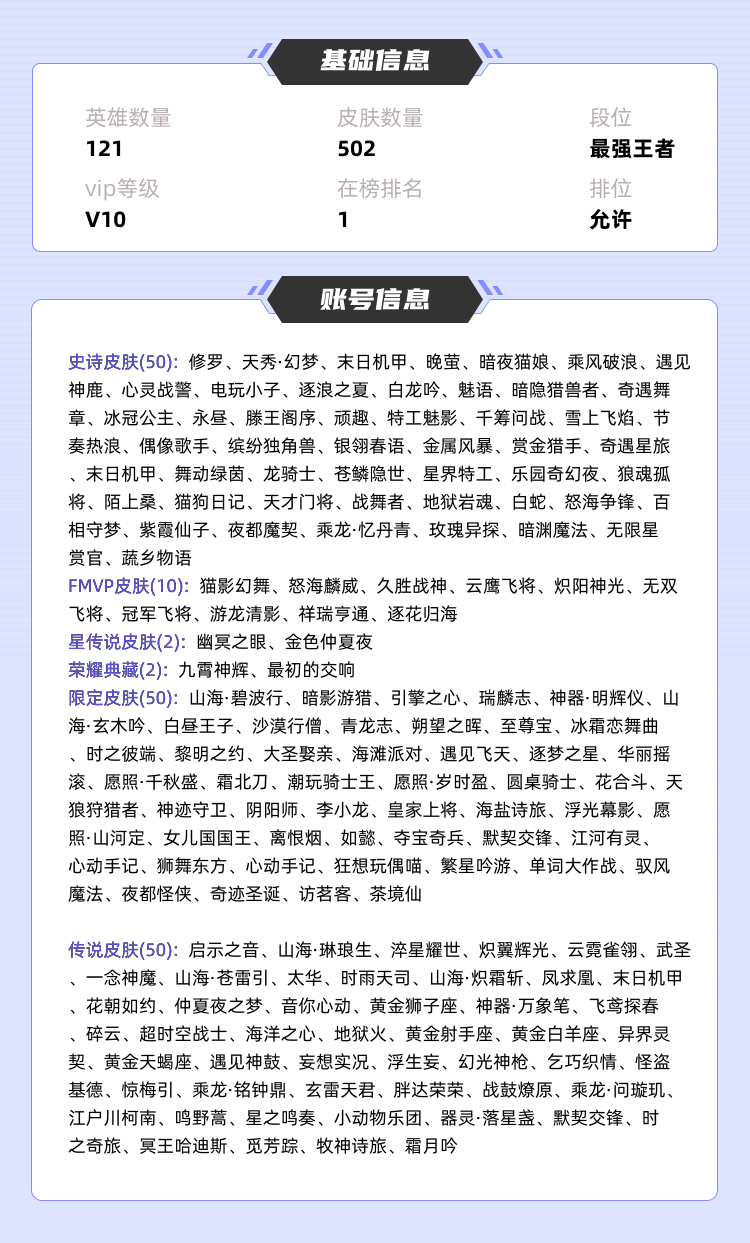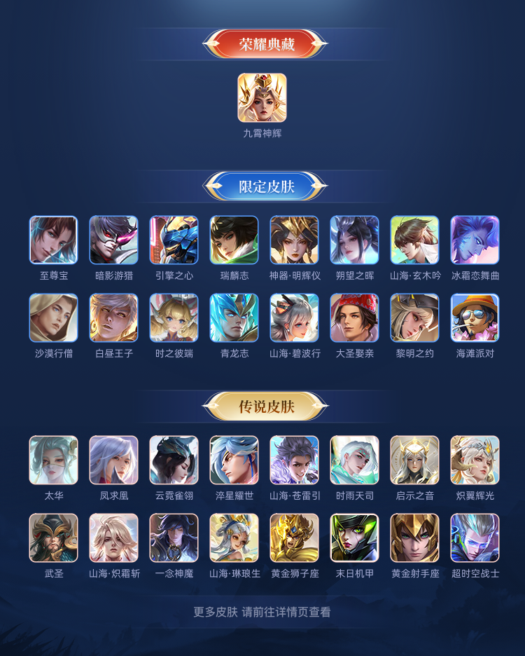 v10,伽罗新典藏。蛇限全秒。传说,史诗皮肤多。新出皮肤都差不多买了
