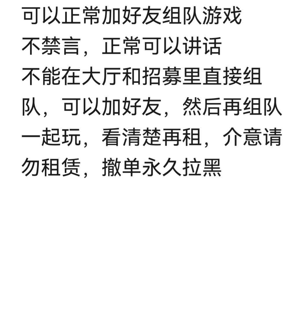 限制: 租号4次及以上 |装备描述:退出游戏后不要直接登录,重新从平台登录 1、毁号,涉及毁坏虚拟财产罪及计算机安全罪,请文明游戏素质游戏,让我们共建美好租号平台 主页互相关注可以邀请游戏 成为好友ミ✨ミ 信誉分充足时,排位巅峰任您畅玩ミ✨ミ ✅正常游戏直接登录,撤单后开游戏拉黑付全款✅ ❎本号价值10万元,毁号属于违法犯罪行为,如果毁号将会交于律师处理请文明游戏素质游戏❎ ⛔投诉一律由平台处理非号主本人意愿⛔ ミ✨ミ〖高品质店铺〗服务〖高质量租客〗ミ✨ミ ミ✨ミ〖绿色游戏让大家都拥有好的体验〗ミ✨ミ 〖⛔注意事项⛔〗 ❶可以不小心扣信誉分,但达到❹分会被禁止游戏❗ ❷出租火爆才会有健康限制,下单时会自动补时间 ❸评论区留联 系方式的,都是诈骗,请勿上当受骗 ❹图片真实,不过段位、名字、头像可能会变化 赛季初钻石段,赛季中星耀段,赛季末王者段 ❺恶意投诉都会被系统自动关进小黑屋 ❻恶意撤单后开对局,专员会立马仲裁追诉,下单后不喜欢请不要开对局并退出账号 ❼恶意毁号【顶级店专属客服|封杀租号黑名单】 ❽评论区五星留言都会收到回复✨ ミ✨ミ最后感谢平台,是它让我们相遇^O^ミ✨ミ
