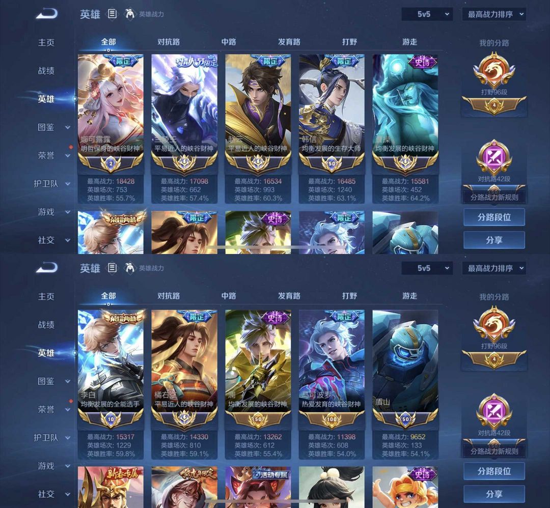 V8巅峰打野96段5在榜魔方亮♉1.7万分大国服兰陵王赵云曹操橘右京韩信李白♉百星历史巅峰2450