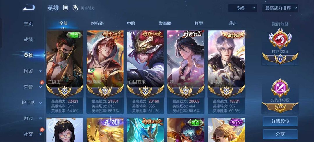 124段打野❤️2.24w兰陵王2.2w老虎❤️在榜省猴子云缨诸葛亮橘子❤️禁止挂机巅峰★数据号