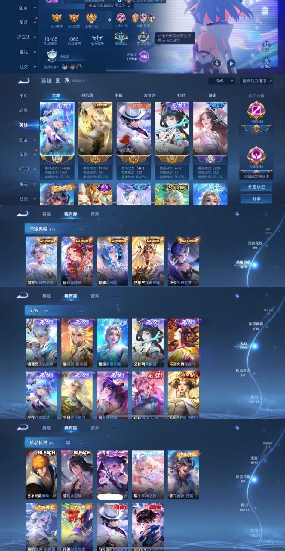 漂亮女号✨10无双9珍品85传说✨国服小乔万战镜✨全十周年千山共赴✨诡秘之主死亡执政官✨天机白泽