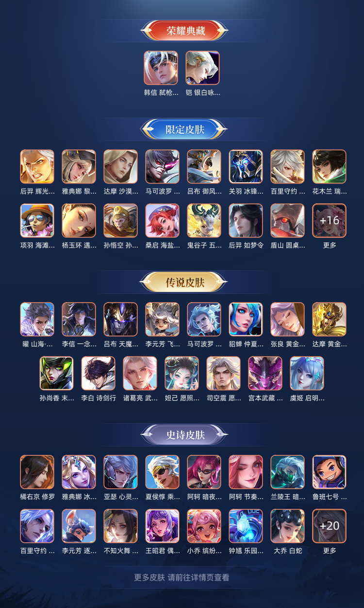 传奇王者,两典藏,一无双,一珍品,32传说,103史诗,天魔缭乱,武陵仙君,韩信典藏,凯典藏